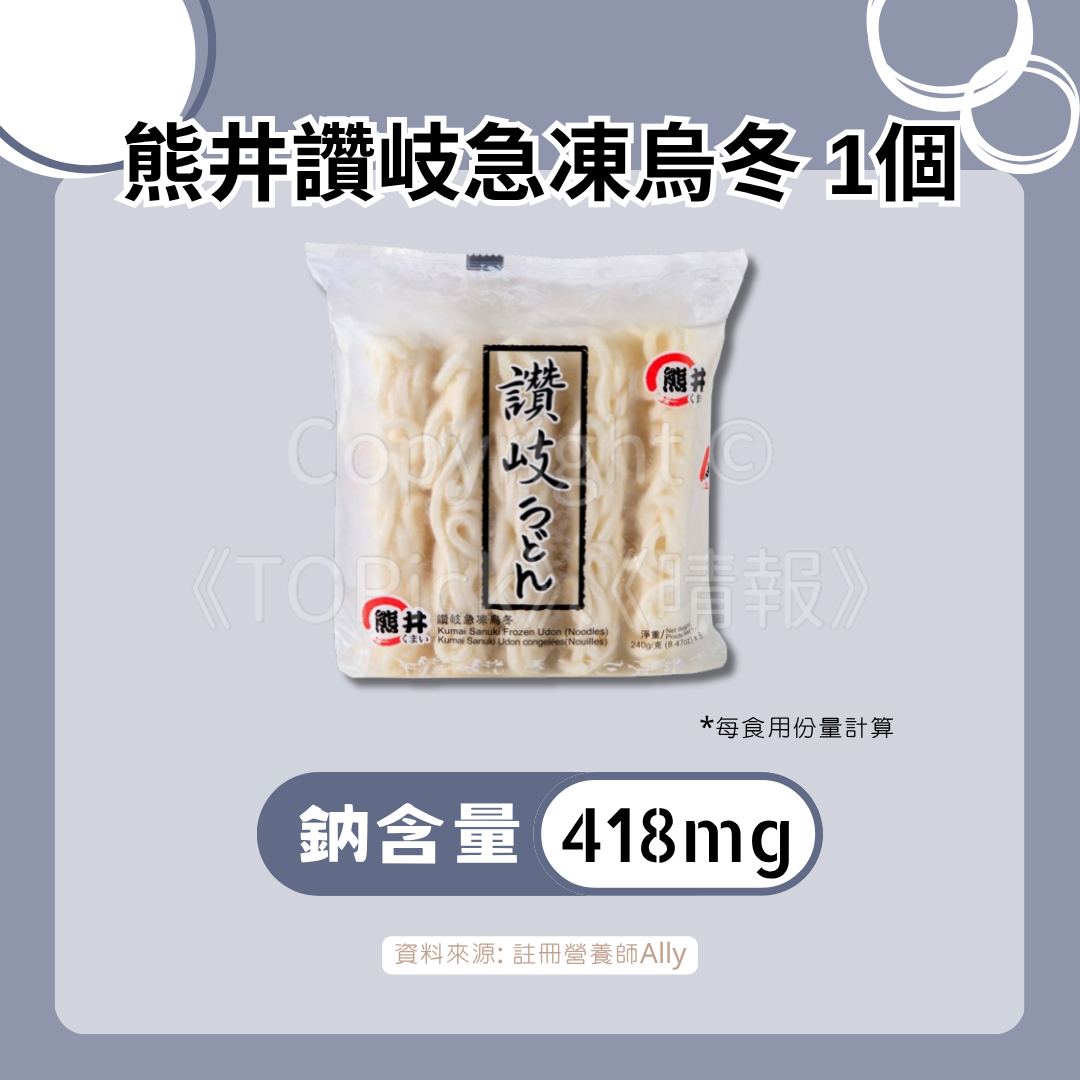 而低鈉的標準為「每100克食物含不多過120毫克鈉」,市民在購買烏冬時,記得檢查清楚營養標籤。