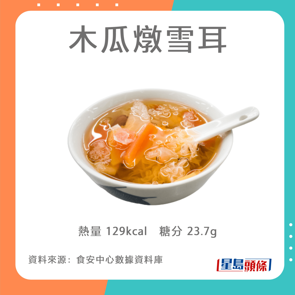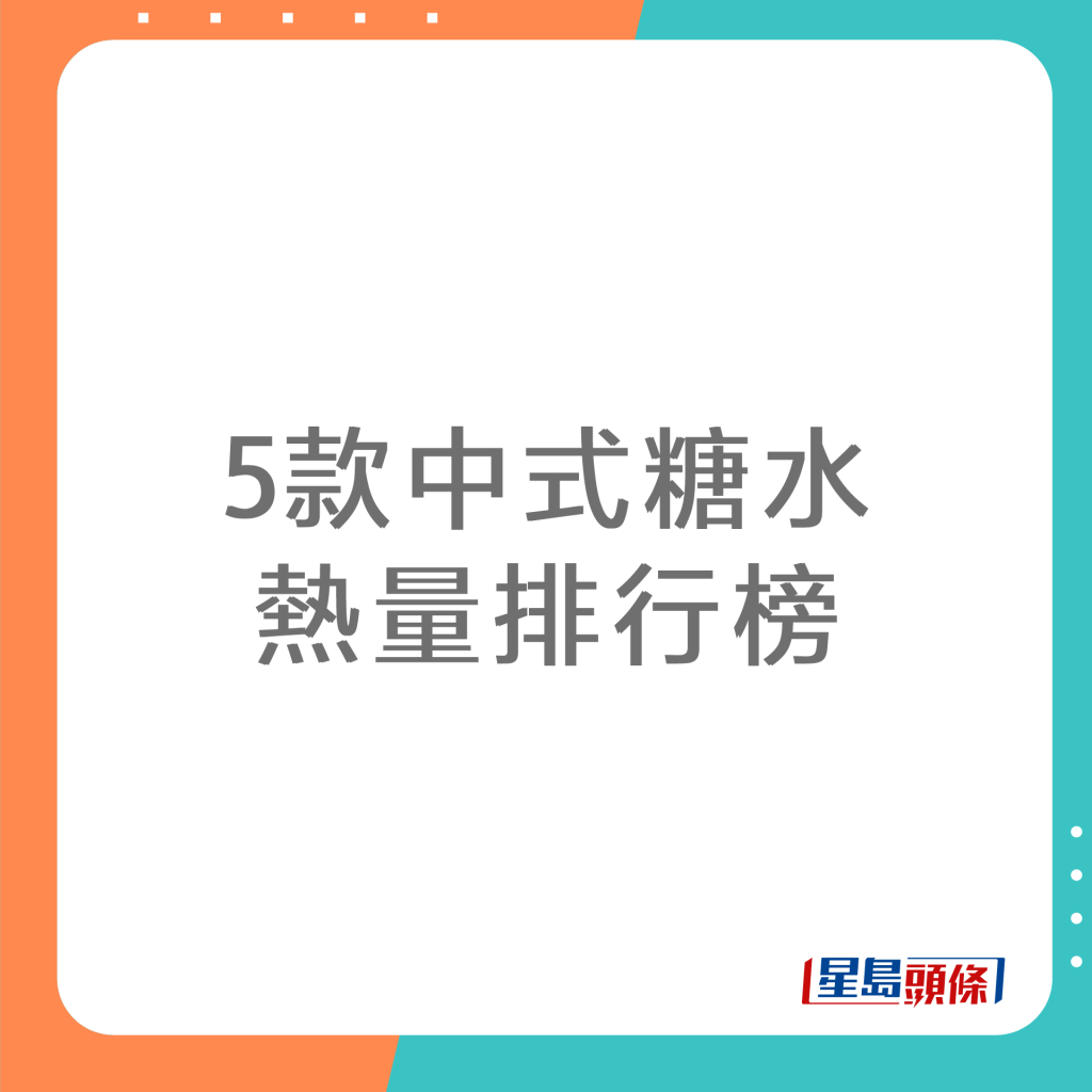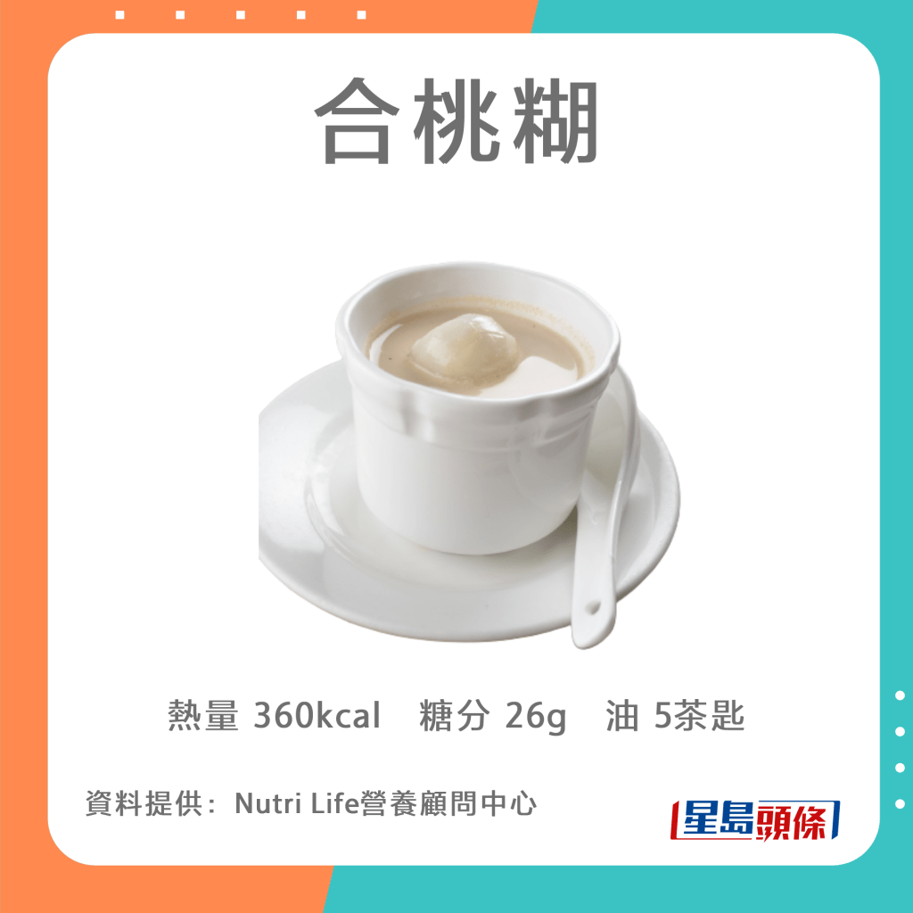 註冊營養師李珮璇及楊盈希指出,有5款中式糖水的熱量、糖分及油相對較高,減肥人士要多加注意。綜合資料可見,在熱量方面,每款介乎192kcal至360kcal之間,其中芝麻糊的熱量相當於1.3碗飯,而合桃糊則相當於2碗飯。
