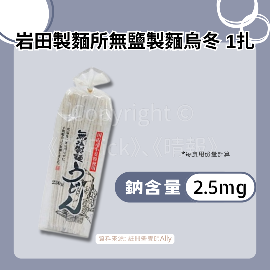 1. 岩田製麵所無鹽製麵烏冬 2.5毫克鈉