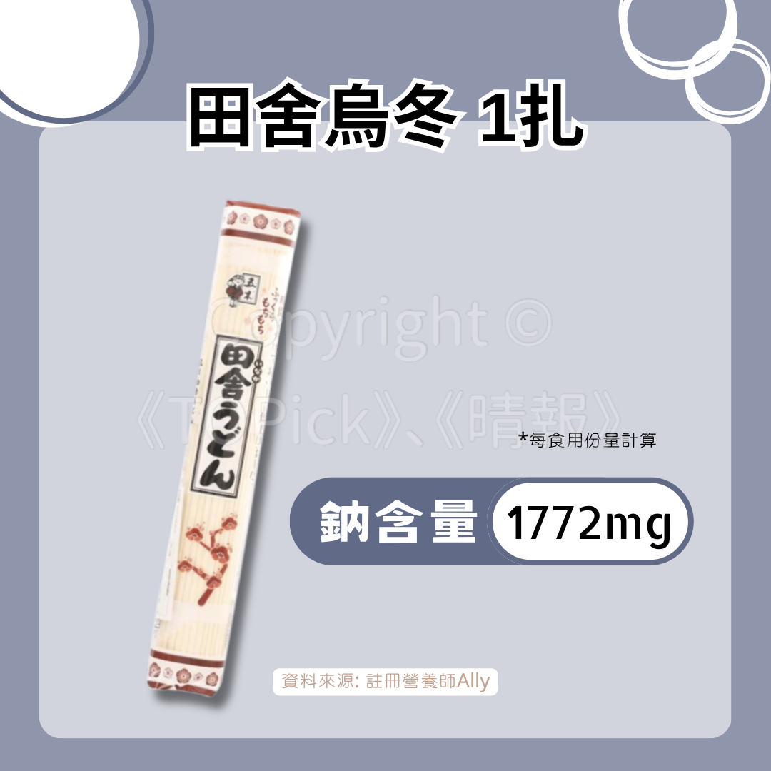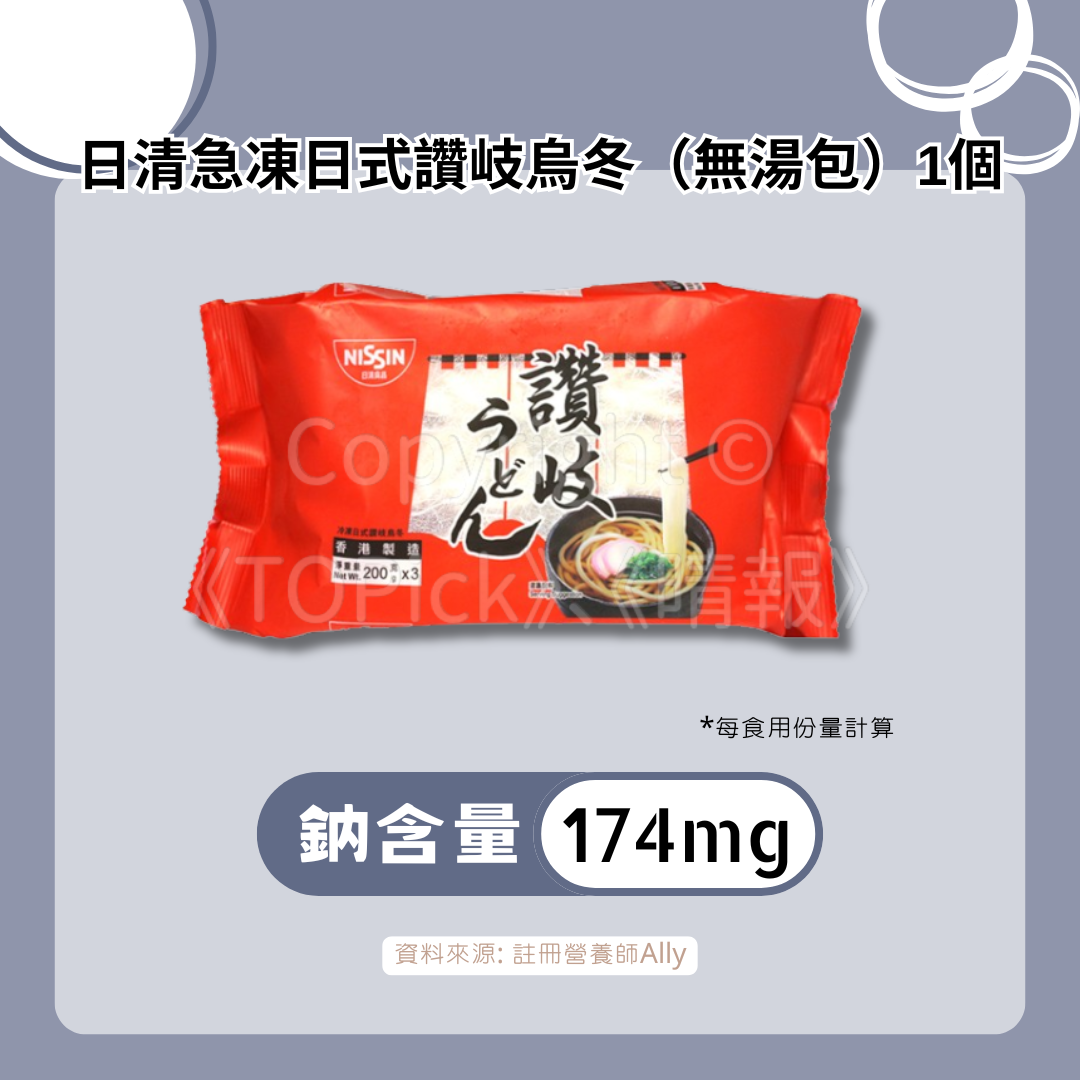 而低鈉的標準為「每100克食物含不多過120毫克鈉」,市民在購買烏冬時,記得檢查清楚營養標籤。