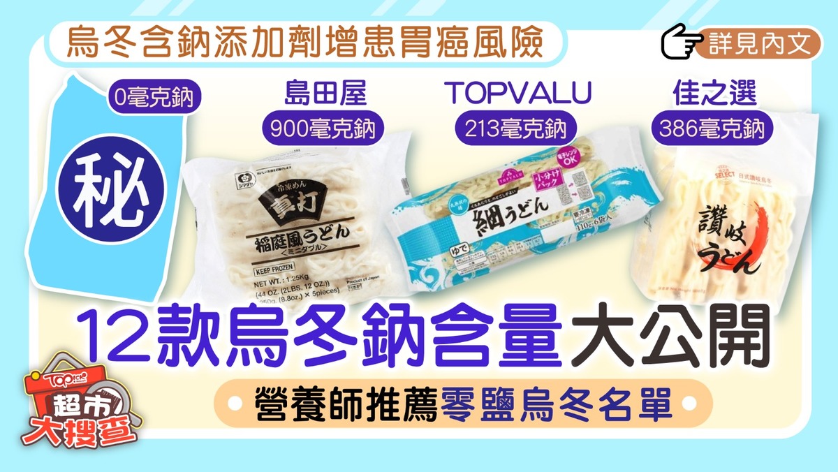 「Nutri Life智悅營養顧問中心」註冊營養師Ally在Instagram發文提醒,烏冬看似健康 ,但有部份牌子會使用一些含鈉添加劑保鮮,令烏冬鈉含量分分鐘比即食麵更多。如果經常食用,就有機會引致水腫、高血壓,甚至增加患上胃癌、腎病風險!