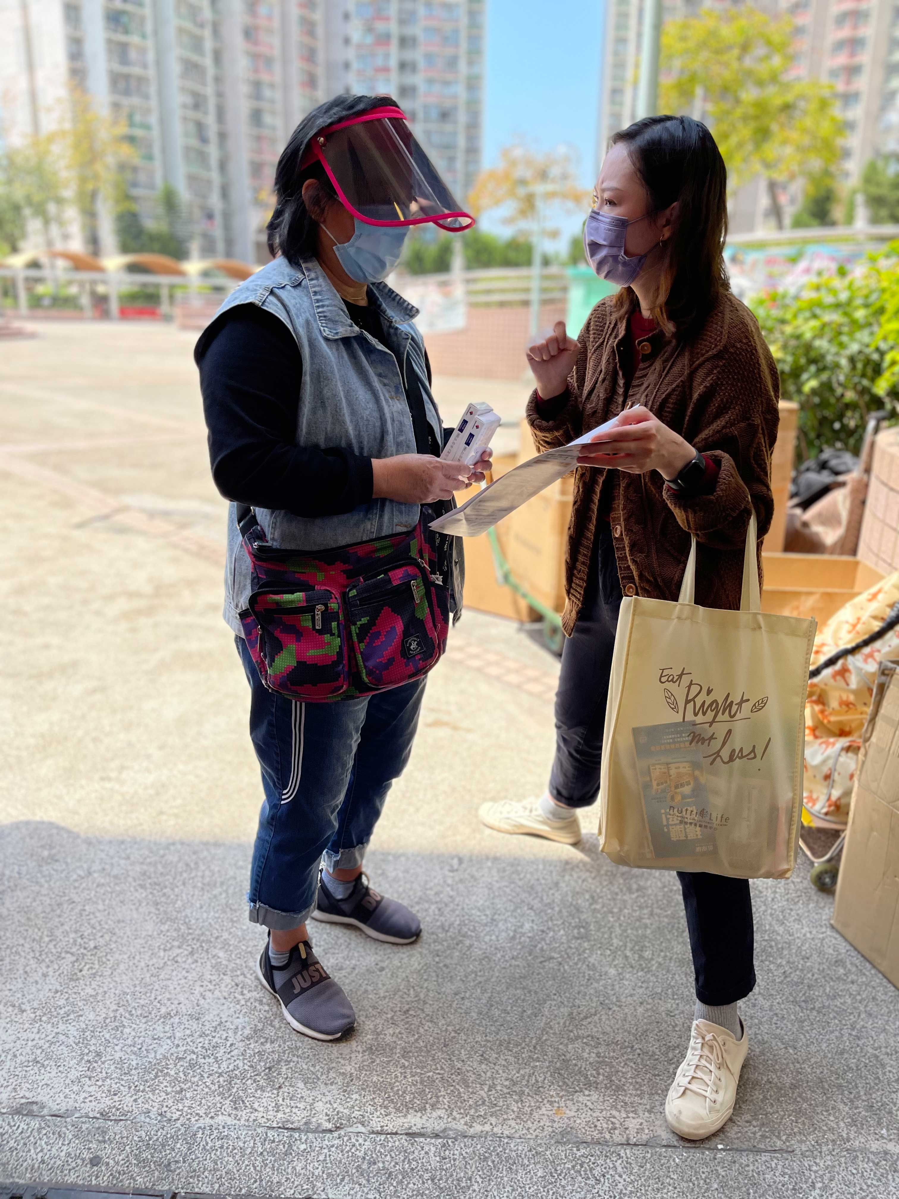 註冊營養師亦在疫情期間到訪天水圍,派發部分福袋,親身為公公婆婆介紹福袋內容及解答飲食疑難。發現有些長者因為怕血糖過高,而不夠膽吃水果,因而飲食中欠缺水果中的維他命和纖維;在疫情期間亦沒有去醫院複診及定期服藥,血糖及血壓過高亦不知道如何處理... 因此註冊營養師亦向公公婆婆逐一仔細解釋控制血糖的飲食建議。